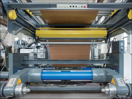 This industrial machine component features an auto-splicer capable of butt-to-butt splicing. When paper joints pass through subsequent processes, the corona doesn't need to stop (unlike with lapped splicing), preventing material waste due to lack of corona. Additionally, the pressure roll remains stable during paper jointing, eliminating harmful impacts on pressure and chill rolls.